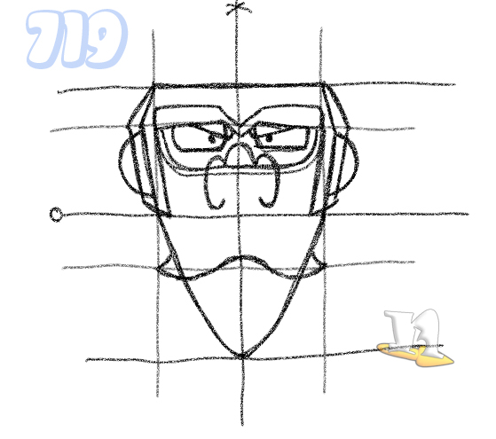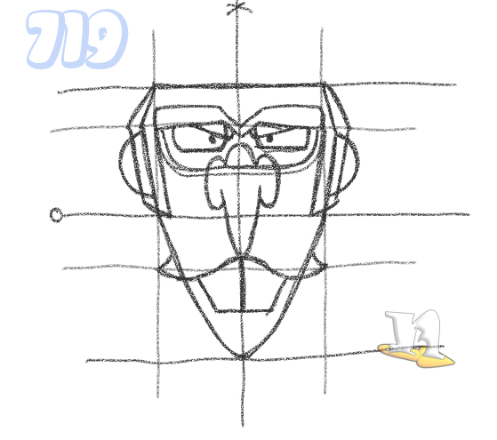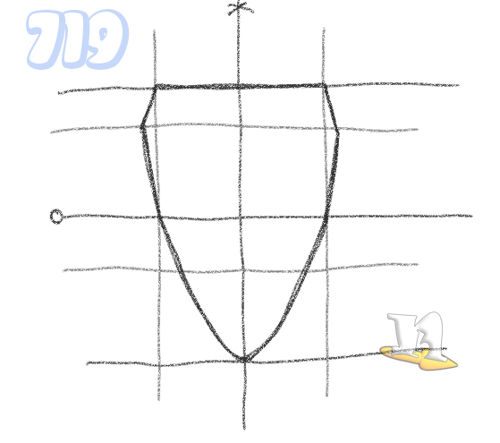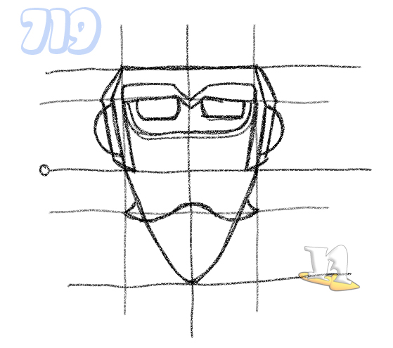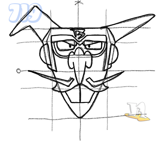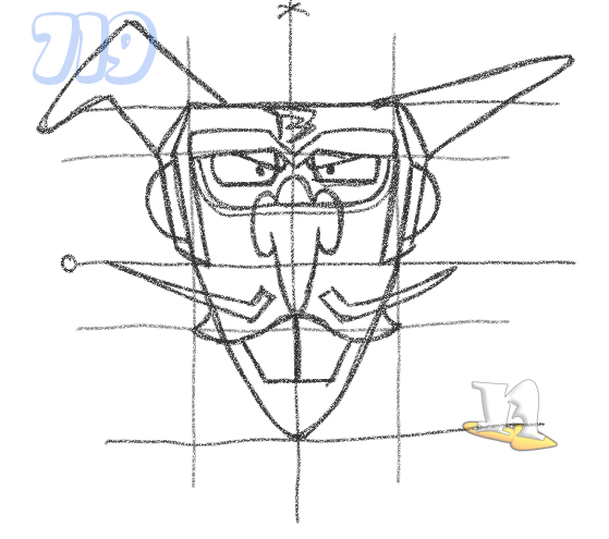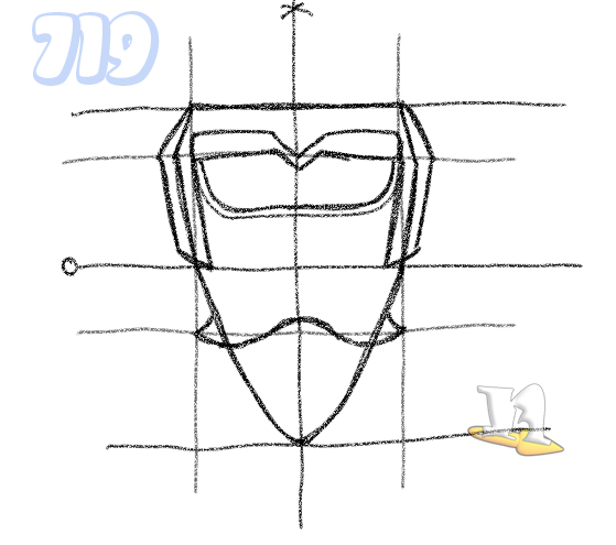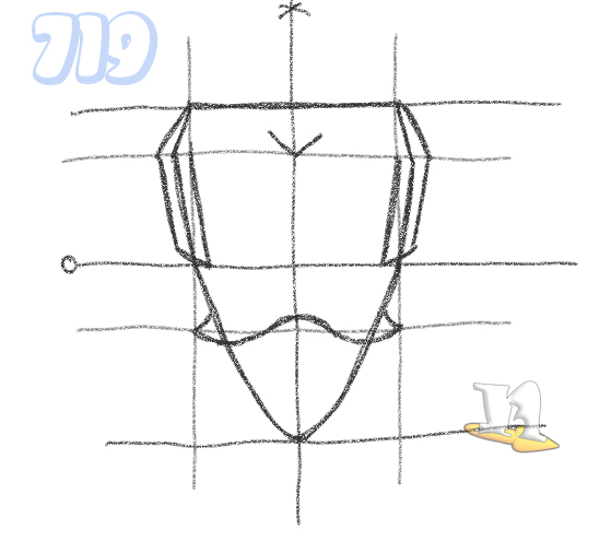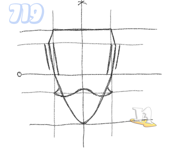 Ora colleghiamo le linee parallele alla linea della testa. Aggiungiamo anche una V sulla fronte.