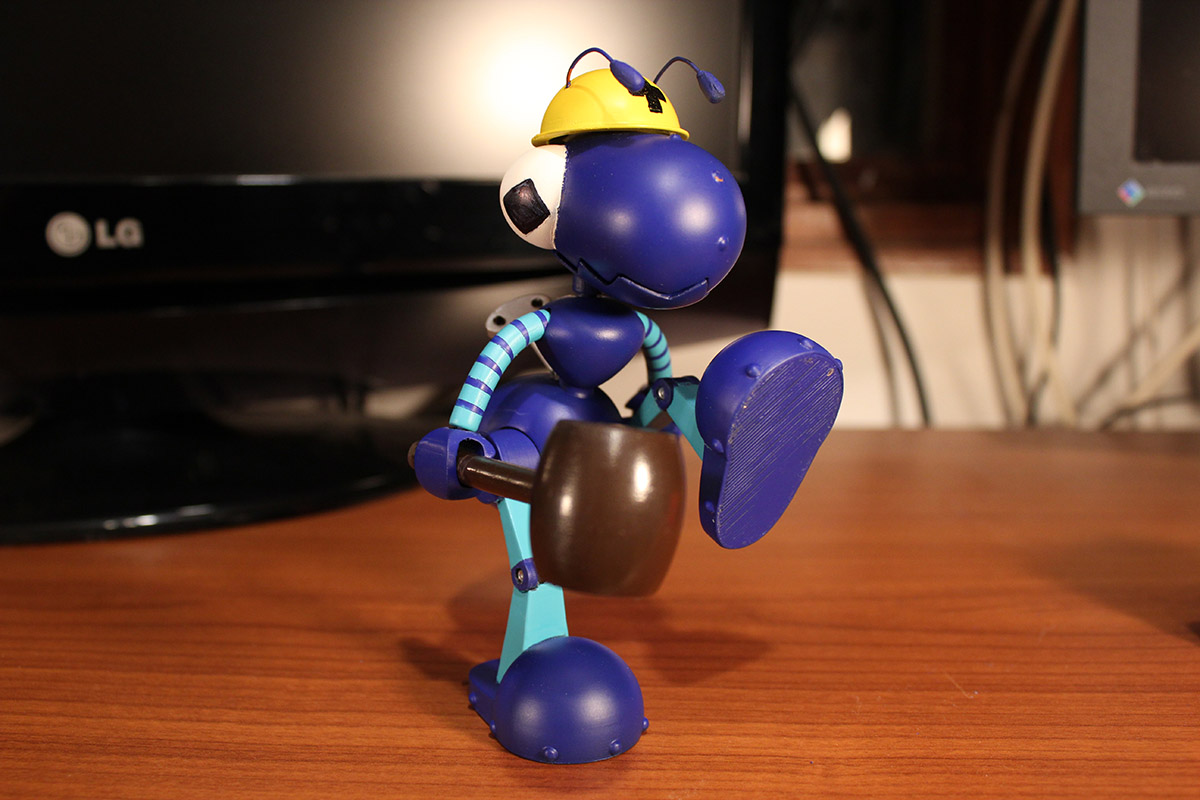 Ottenuto il file GCODE con tutti i parametri necessari posso finalmente iniziare a stampare. Per ottenere un risultato migliore in termine di qualità finale, ho scelto di stampare il robot in parti separate anzichè optare per una stampa unica, inoltre, stampando separatamente arti, testa e busto mi ha permesso di poter realizzare un modello snodabile. La stampa è stata eseguita in PLA con una risoluzione di 0,05 mm.