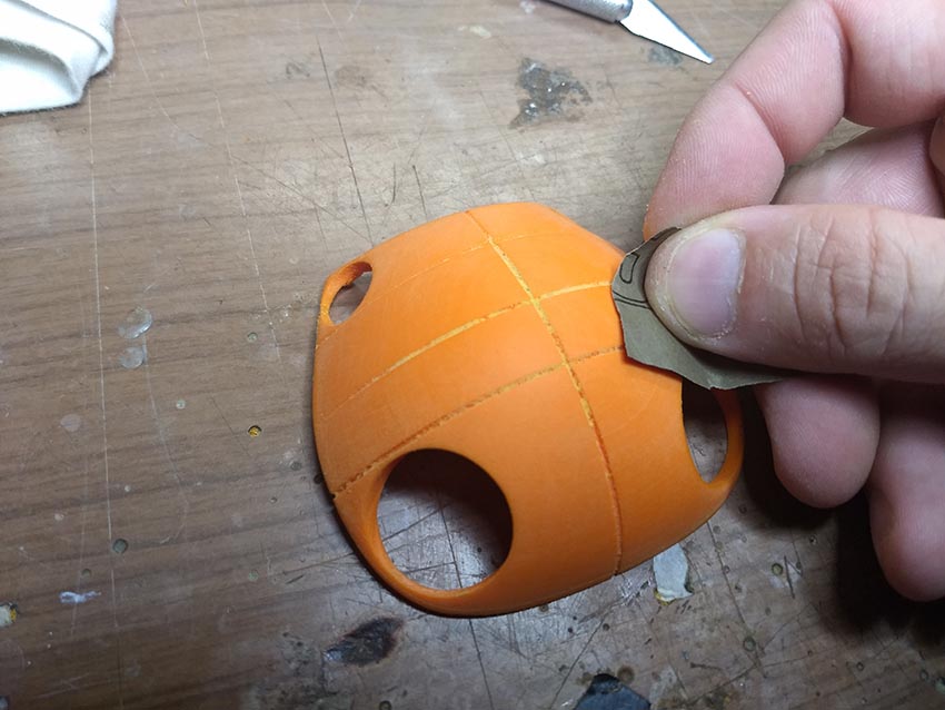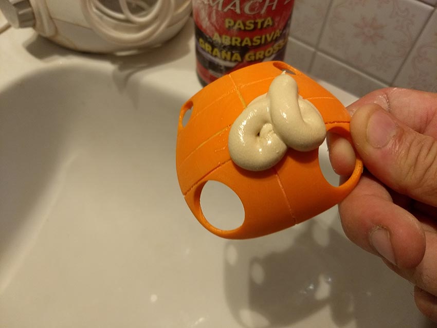 Terminate le stampe di tutte le parti si passa alla rifinitura e qui ci si deve armare di tanta pazienza e carta vetrata. Uno dei difetti della stampa 3D è che il processo avviene a strati e non permette di ottenere delle superfici perfettamente lisce ma risulteranno scalettate, per ovviare a questo problema si cerca sempre di stampare alla massima risoluzione possibile e con una velocità di movimento dell’estrusore estremamente bassa, nonostante questi accorgimenti il pezzo non risulterà esente da difetti. Qui entra in gioco “l’olio di gomito” e con l ‘uso della carta vetrata si passa a carteggiare il pezzo utilizzando diverse grammature iniziando da una grammatura grossa seguita da una più fine.