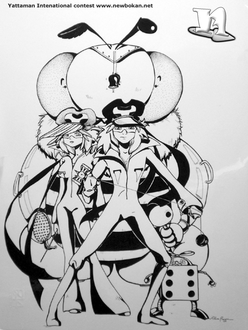 Yatter e Yatta Panda, con lo stile kawaii tipico di tutte le immagini di Yumemiru Hito: “L’immagine è stata realizzata in illustrator attraverso sovrapposizione e rifilamento di immagini geometriche. Non ha una particolare connessione con alcuno degli episodi di Yattaman ma mi piaceva l’idea di una immagine fresca e spensierata come i protagonisti.”