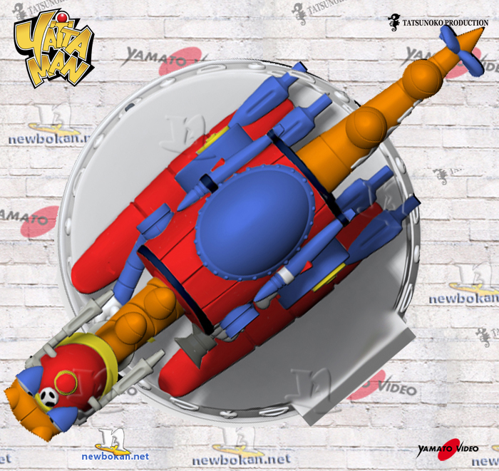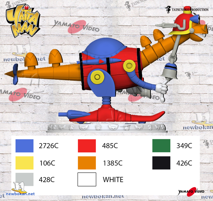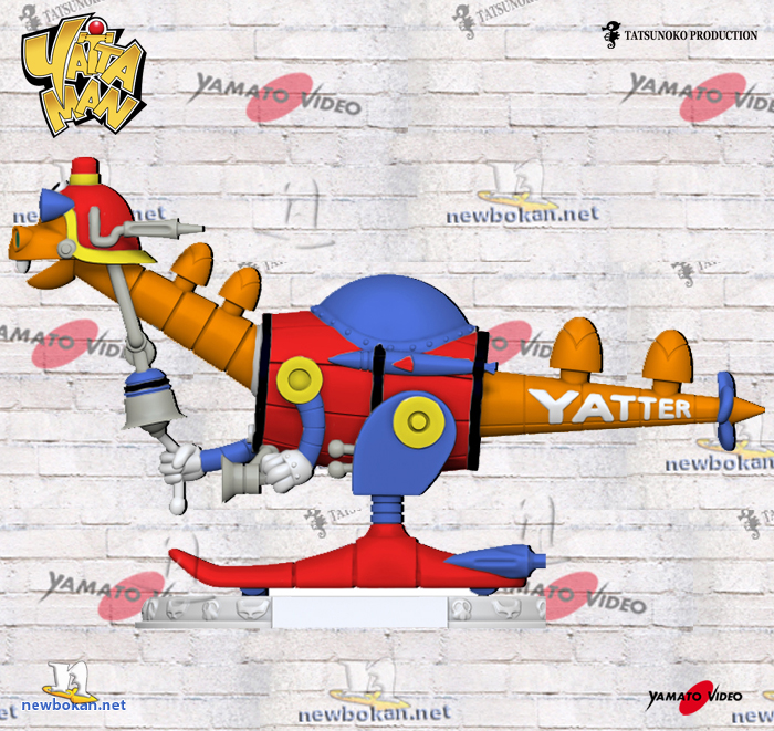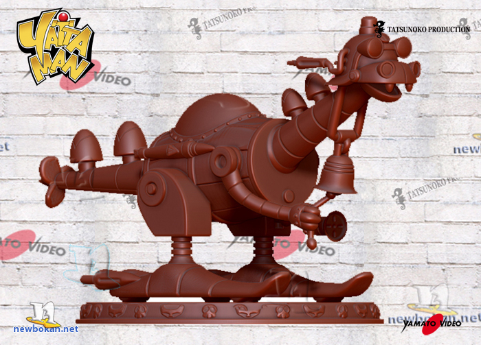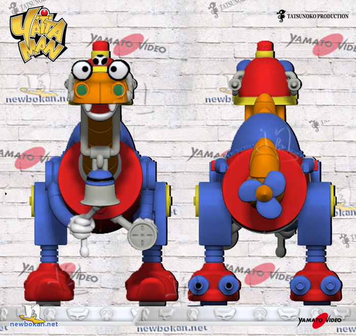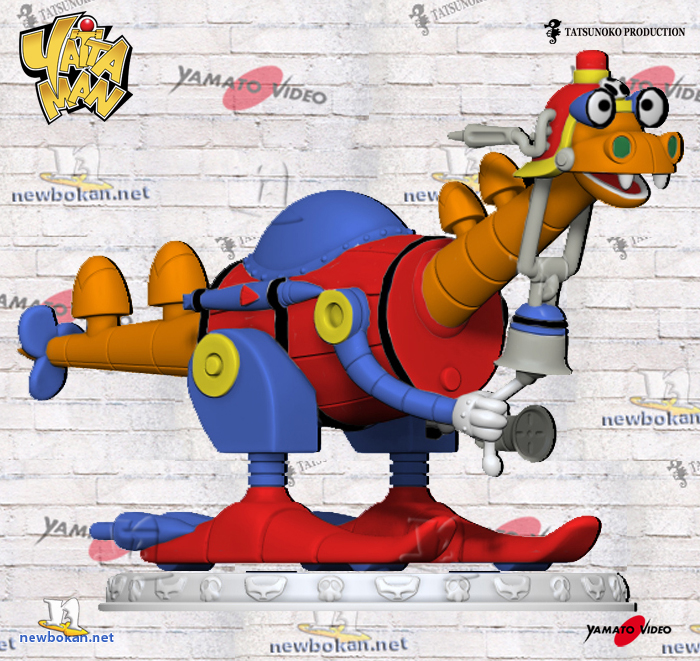 Tra tutti gli Yatta Robot è sicuramente quello dall’aspetto più ridicolo, il suo corpo ha la forma di un barile unito da due gambe che terminano con dei piedi che sembrano dei Skiroll.