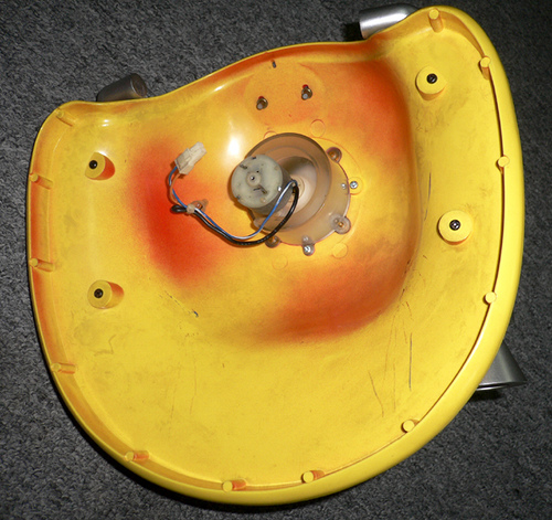 Il primo movimento è il motorino posto sotto il cappello che fa girare la coppa metallica della sirena attorno alla lampadina.